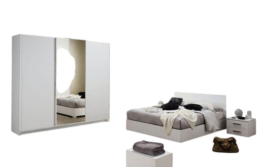 المواد: خشب MDF اللون: أبيض. أبعاد : سرير: العرض: 160 سم الارتفاع: 115 سم الطول: 200 سم خزانة الملابس : العرض: 210 سم ...