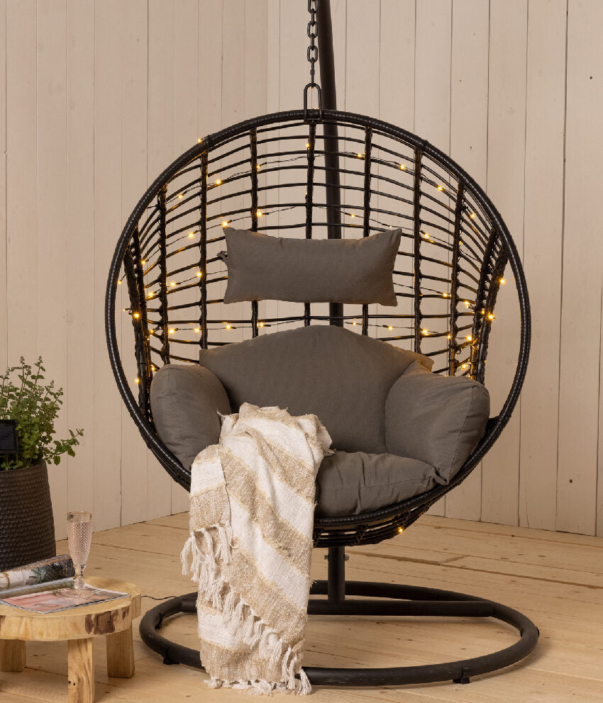 Material: iron + Rattan ( Black) Paint: matte electrostatic paint Filling: Fiber Fabric: Jaguar  Dimensions:  Diameter: 150 cm Height: 70 cm No...