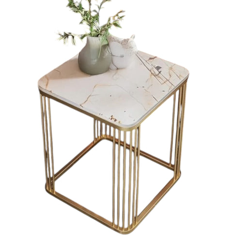 Material: Steel +Marble Paint: Electrostatic Color: Gold Dimensions: Width: 40 cm Depth: 40 cm Height: 40 cm