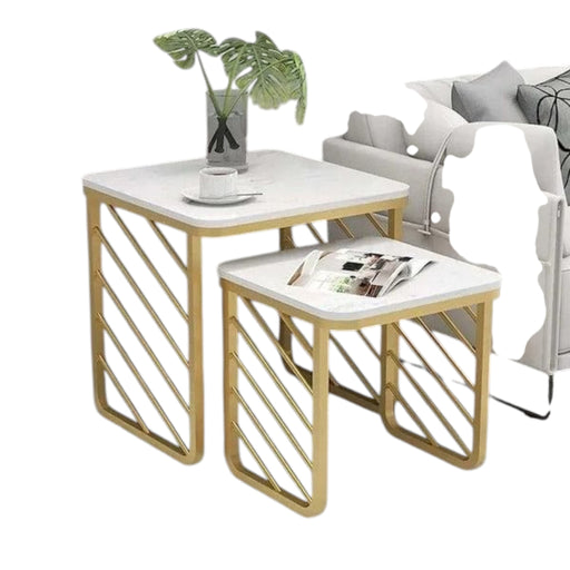 Material: Steel +Marble Paint: Electrostatic Color: Gold Dimensions:Large Table : Width: 45 cm Depth: 45 cm Height: 45 cm Small Table: Width...
